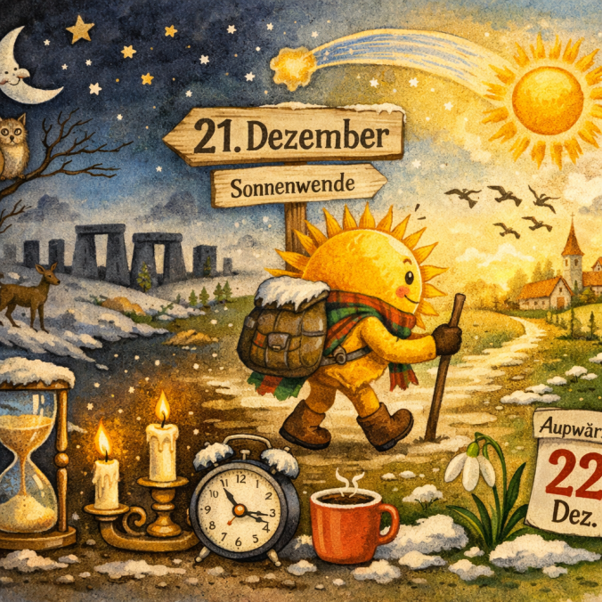 Die optimistische Pointe: Die Wintersonnenwende ist ein paradoxes Fest. Sie markiert den tiefsten Punkt der Dunkelheit und zugleich den Beginn des Aufstiegs ins Licht. Ein kosmisches „Happy End“, das sich jedes Jahr wiederholt – ganz ohne Drehbuch, aber mit perfektem Timing. Man könnte sagen: Der 21. Dezember ist der unscheinbare Held des Kalenders. Kein Feiertag, keine große Inszenierung, und doch trägt er die ganze Symbolik des Neubeginns. Wer an diesem Abend eine Kerze anzündet, feiert nicht nur die Nacht, sondern auch das Versprechen des kommenden Tages.